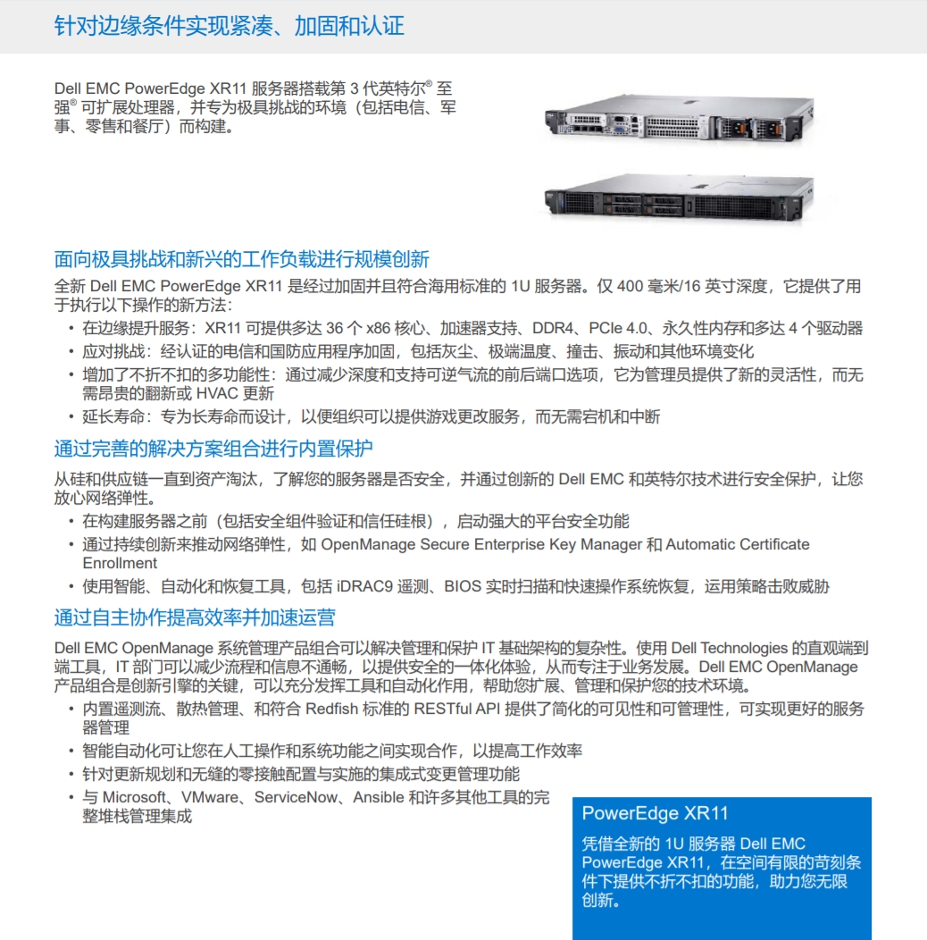 Dell EMC PowerEdge XR11 服務器專為極具挑戰(zhàn)的環(huán)境(包括電信、軍事、零售和餐廳)而構建。